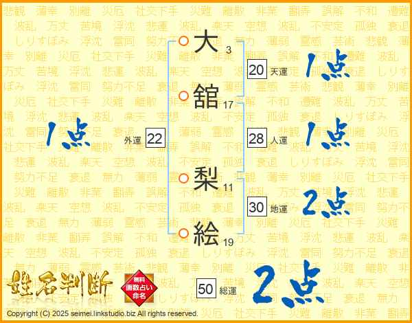 大(3画)舘(17画) 梨(11画)絵(19画)