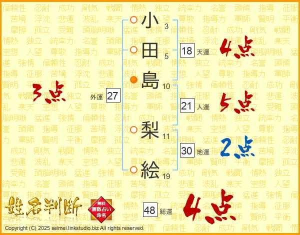小(3画)田(5画)島(10画) 梨(11画)絵(19画)
