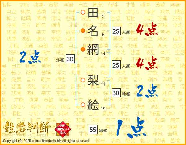 田(5画)名(6画)網(14画) 梨(11画)絵(19画)