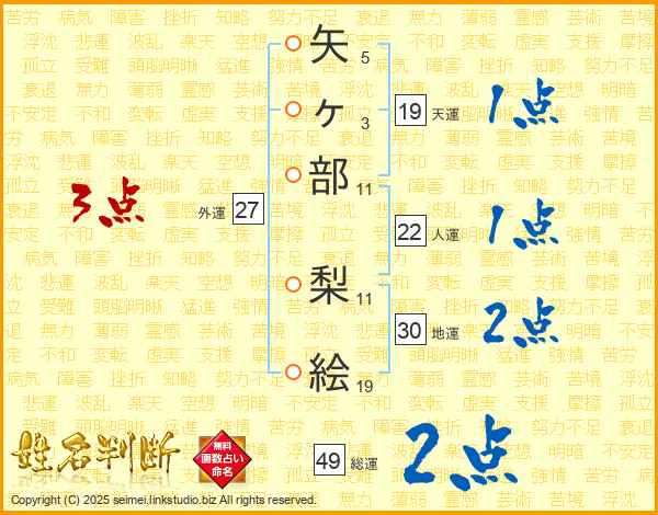 矢ヶ部梨絵さんの総運は49画の2点!