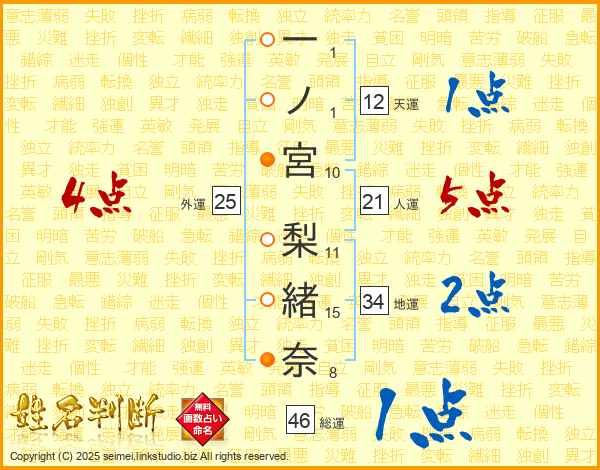 一ノ宮梨緒奈さんの総運は46画の1点!