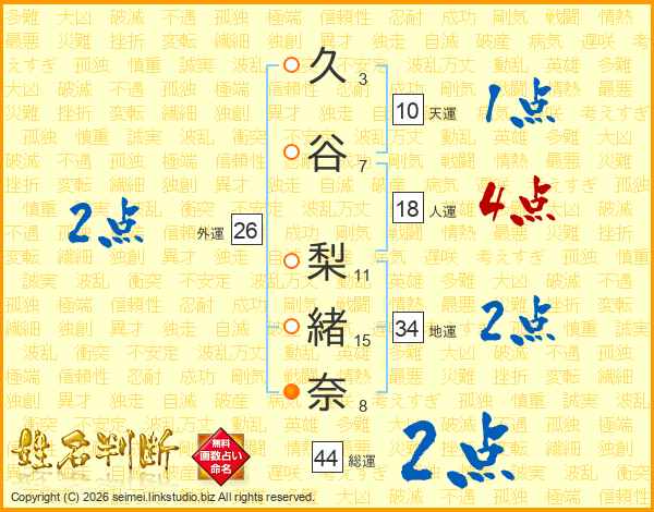 久谷梨緒奈さんの総運は44画の2点!