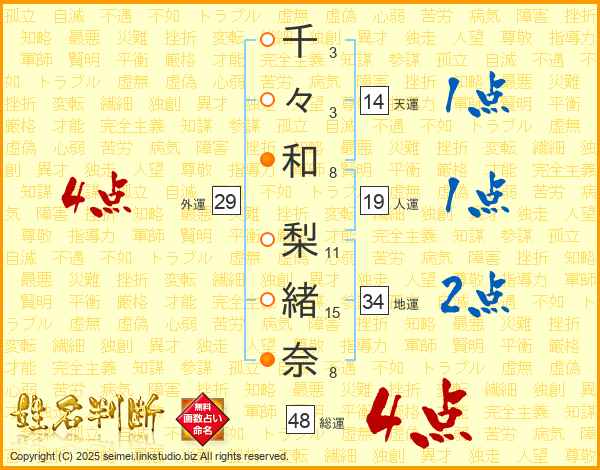千々和梨緒奈さんの総運は48画の4点!