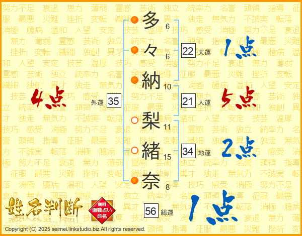 多々納梨緒奈さんの外運は35画の4点!
