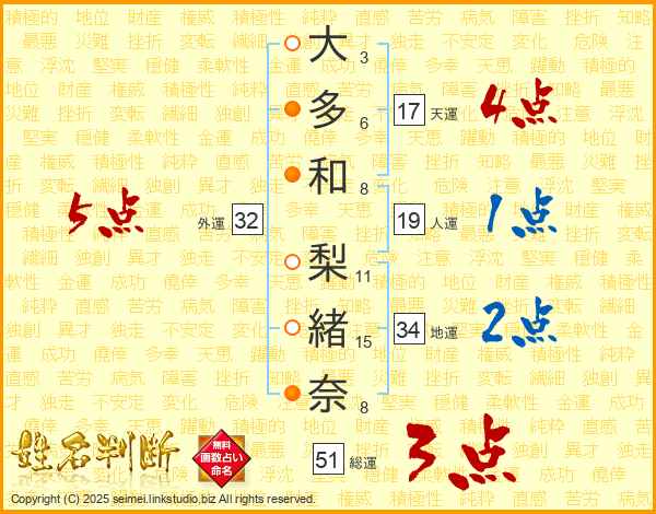 大多和梨緒奈さんの総運は51画の3点!