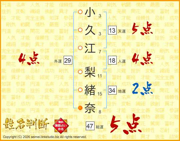 小久江梨緒奈さんの総運は47画の5点!