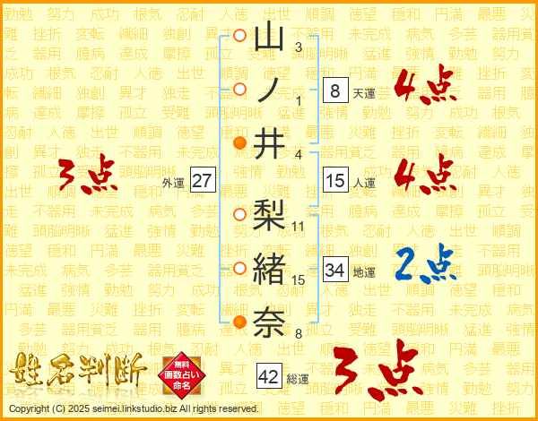 山ノ井梨緒奈さんの総運は42画の3点!