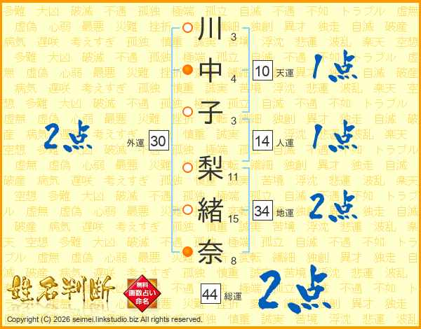 川中子梨緒奈さんの総運は44画の2点!