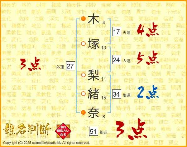 木塚梨緒奈さんの総運は51画の3点!