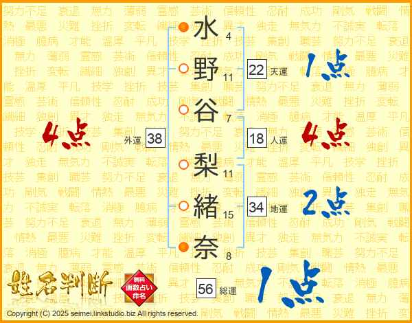 水野谷梨緒奈さんの外運は38画の4点!