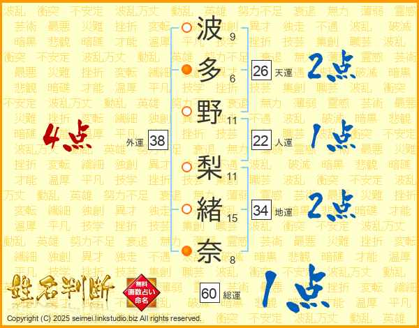 波多野梨緒奈さんの外運は38画の4点!
