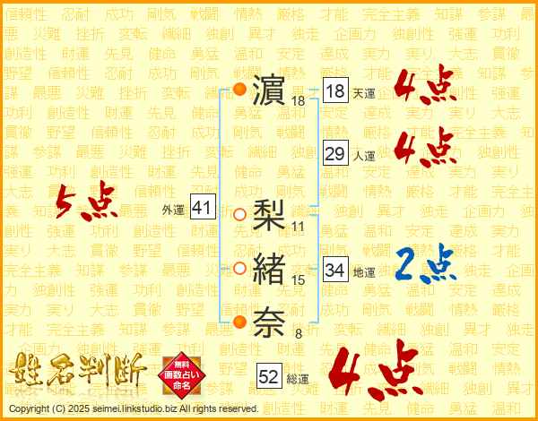 濵(18画) 梨(11画)緒(15画)奈(8画)