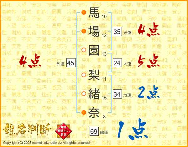 馬場園梨緒奈さんの外運は45画の4点!