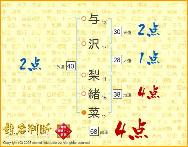 与沢梨緒菜さんの天運は30画の2点!