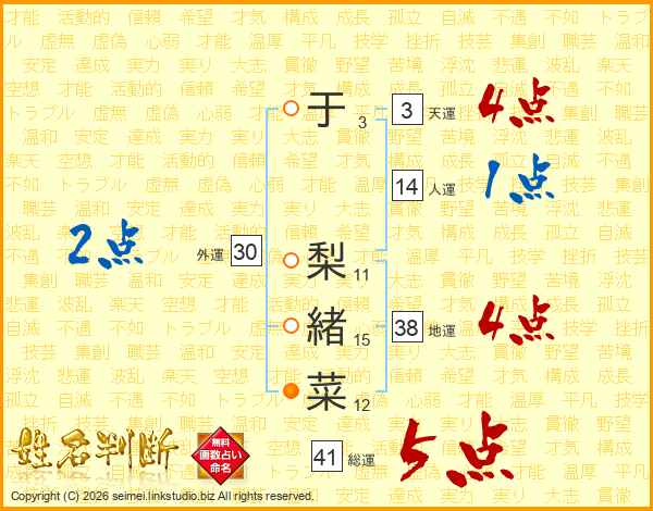 于梨緒菜さんの総運は41画の5点!