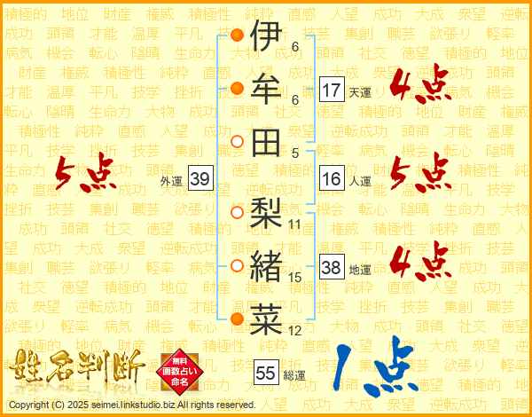 伊牟田梨緒菜さんの外運は39画の5点!