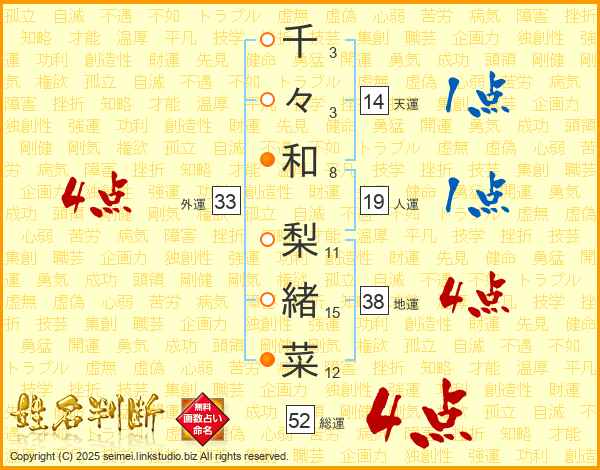 千々和梨緒菜さんの総運は52画の4点!
