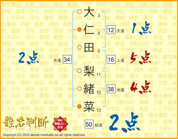 大仁田梨緒菜さんの外運は34画の2点!