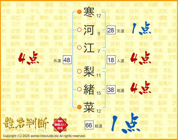 寒河江梨緒菜さんの総運は66画の1点!