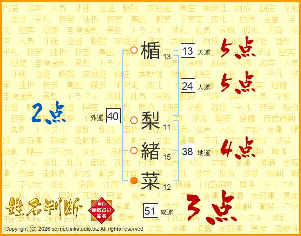 楯梨緒菜さんの総運は51画の3点!