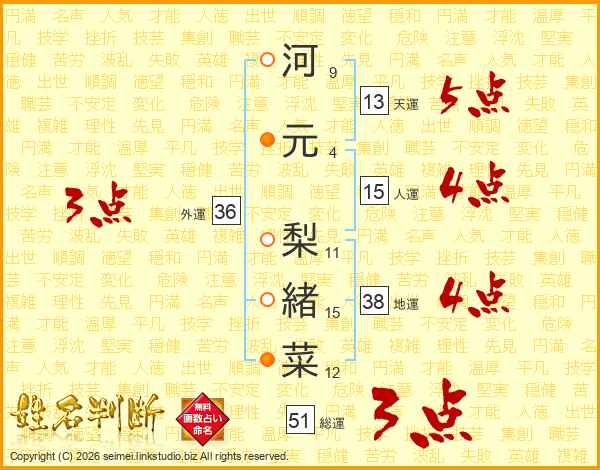 河元梨緒菜さんの外運は36画の3点!