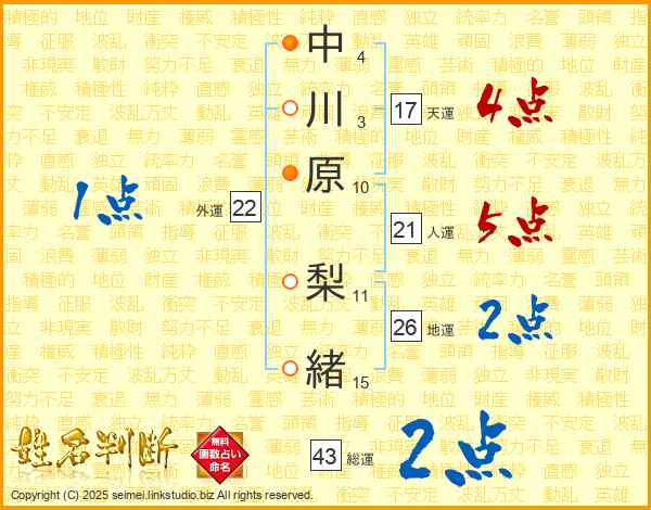 中川原梨緒さんの天運は17画の4点!