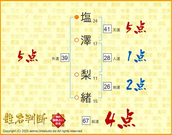 塩澤梨緒さんの外運は39画の5点!
