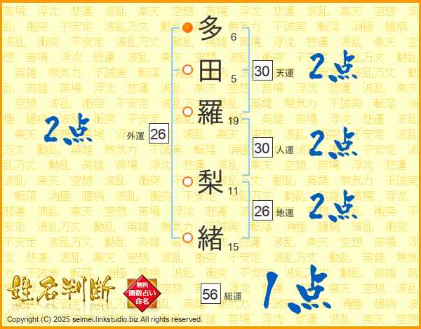 多田羅梨緒さんの天運は30画の2点!