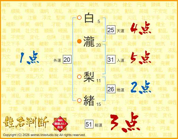 白瀧梨緒さんの人運は31画の5点!