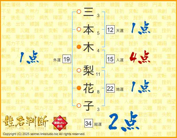 三(3画)本(5画)木(4画) 梨(11画)花(8画)子(3画)