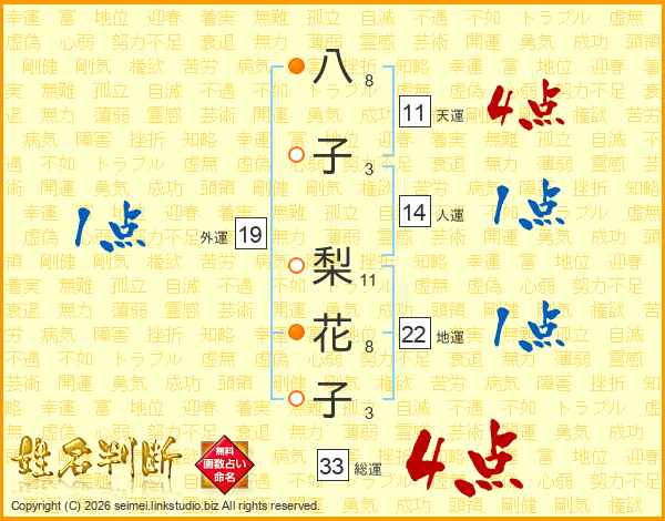 八子梨花子さんの総運は33画の4点!