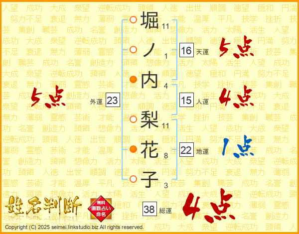 堀ノ内梨花子さんの外運は23画の5点!