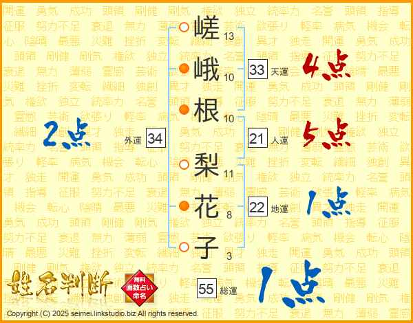 嵯峨根梨花子さんの総運は55画の1点!