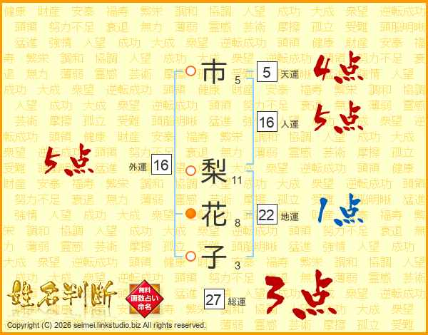 市梨花子さんの外運は16画の5点!