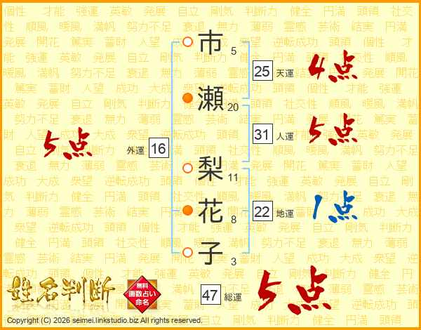 市瀬梨花子さんの人運は31画の5点!