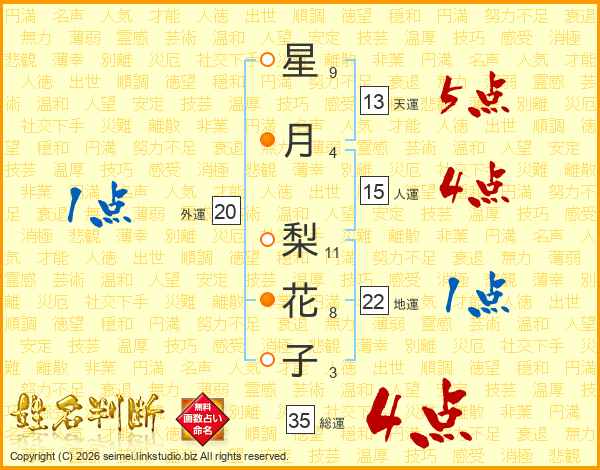 星月梨花子さんの総運は35画の4点!