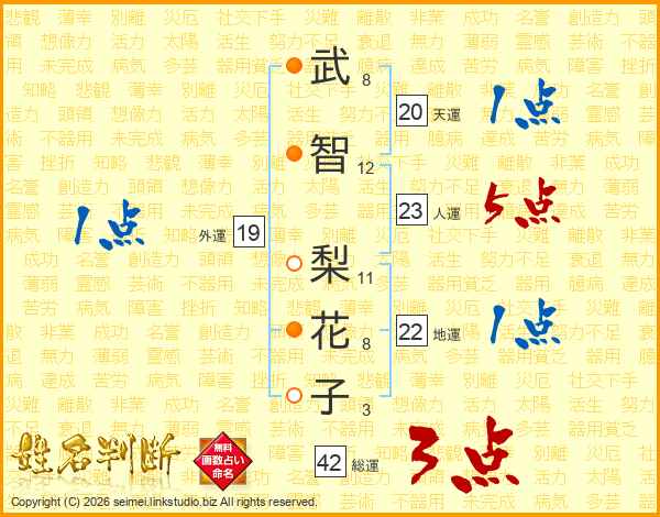 武智梨花子さんの天運は20画の1点!