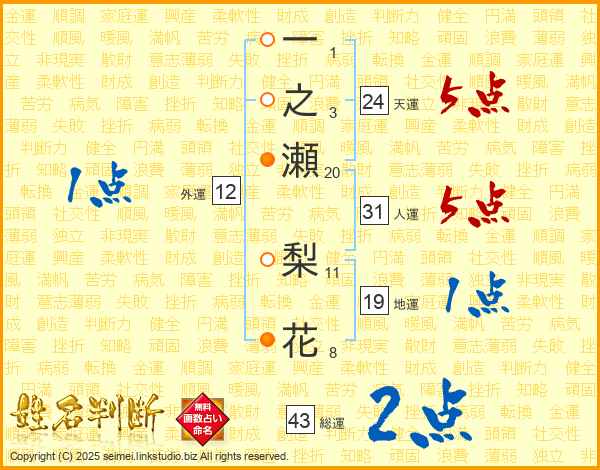一之瀬梨花さんの人運は31画の5点!