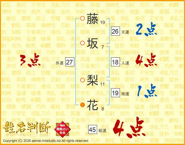 藤坂梨花さんの総運は45画の4点!