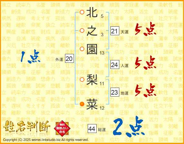 北之園梨菜さんの総運は44画の2点!