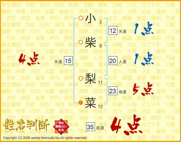 小柴梨菜さんの総運は35画の4点!