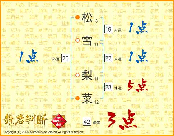 松雪梨菜さんの総運は42画の3点!