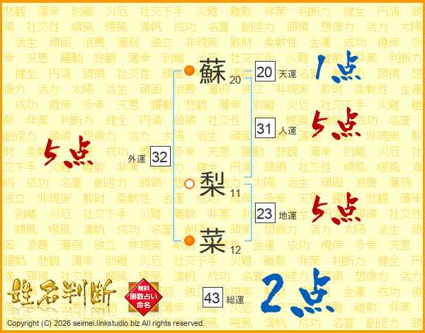 蘇梨菜さんの外運は32画の5点!