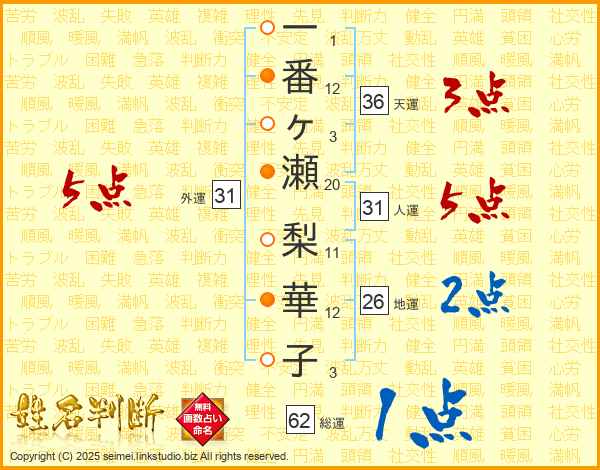一番ヶ瀬梨華子さんの外運は31画の5点!