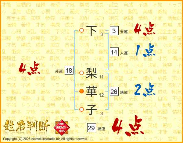 下梨華子さんの総運は29画の4点!