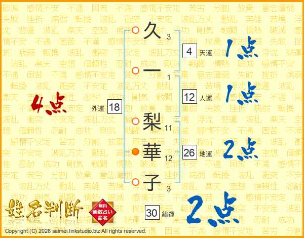 久一梨華子さんの地運は26画の2点!