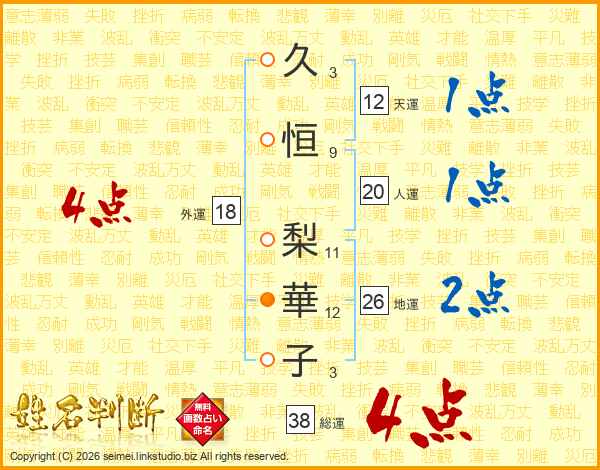 久恒梨華子さんの総運は38画の4点!