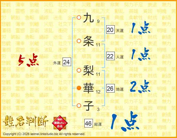 九条梨華子さんの総運は46画の1点!