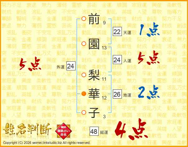 前園梨華子さんの総運は48画の4点!