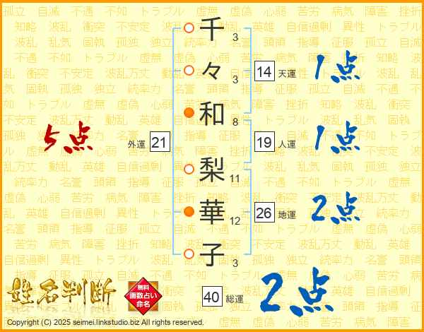 千々和梨華子さんの総運は40画の2点!